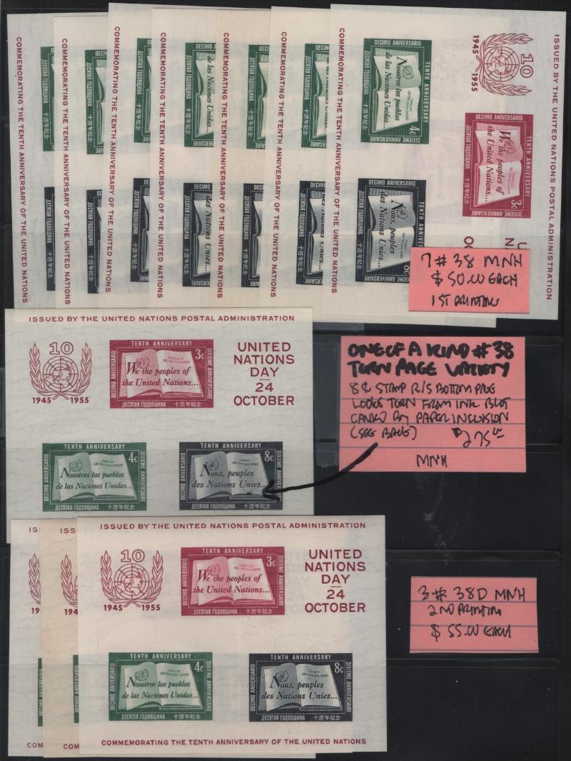 Unused NH Accum (11) S/S incl (7) #38, (3) 38d & (1) "Torn Page" variety - looks torn from ink blot caused by paper inclusion on back; gen VF NH (Image)
