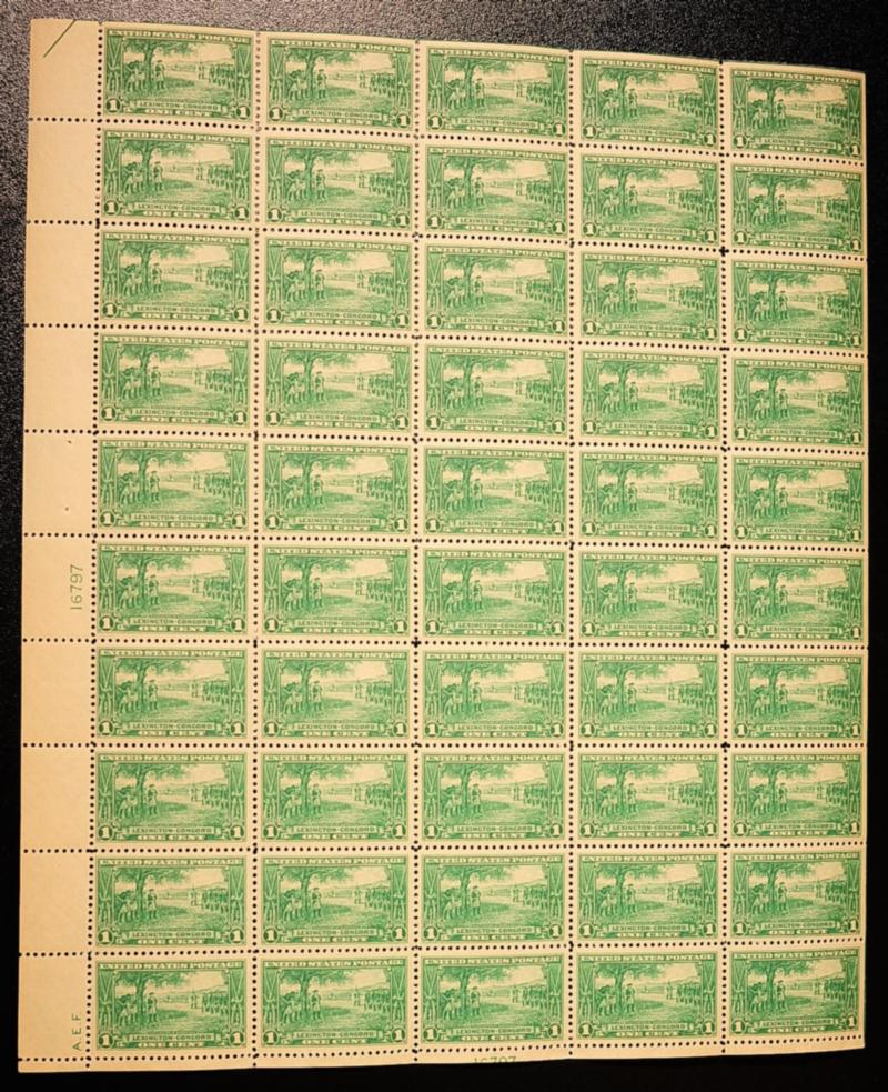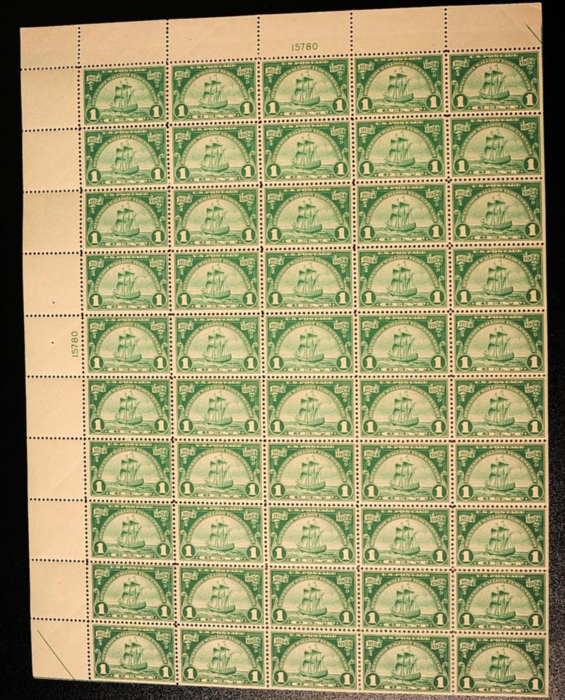 1924, 1c-2c HUGUENOT-WALLOON IN COMPLETE PANES OF 50, #614-615, plate #15780 and 15789 respectively, mint never hinged, fine-very fine, cat. $572.50 (Image)