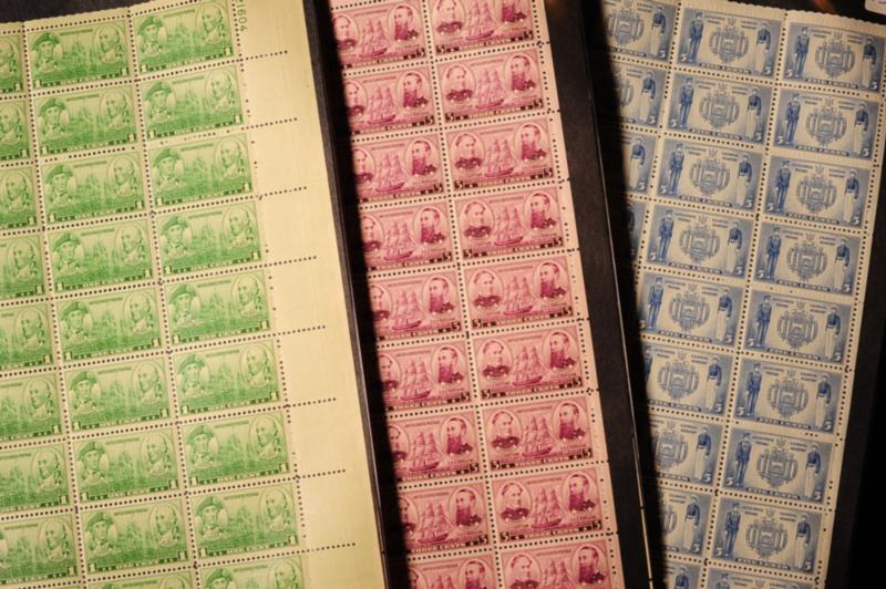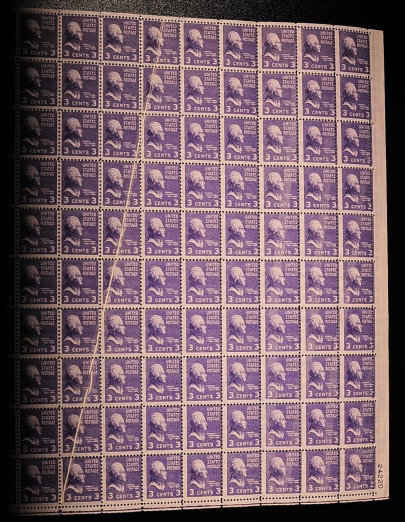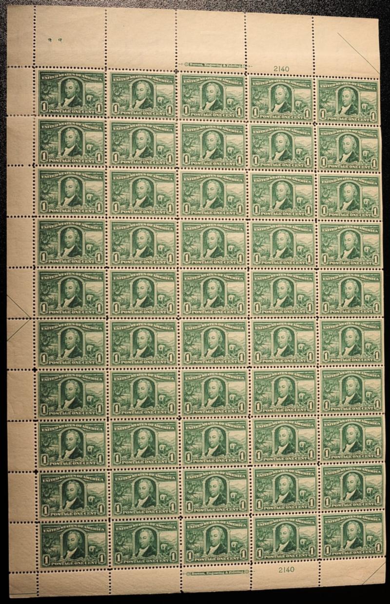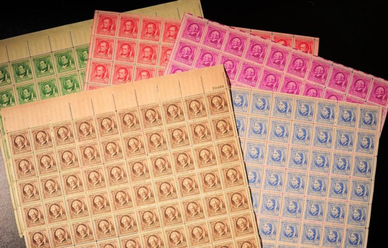 1940, FAMOUS AMERICANS COMPLETE SET IN PANES OF 70, #859-893, mint never hinged, some perf separations, fine-very fine, cat. $2,489.70 (Image)