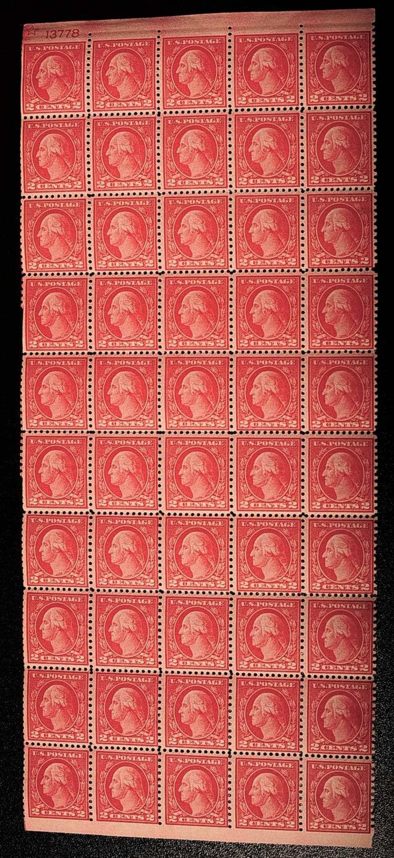 1919, 2c CARMINE ROSE TYPE II PANE OF 50, #540, plate #13778 with star, imperf. at top and bottom, fine-very fine, cat. $1,540.00+ (Image)