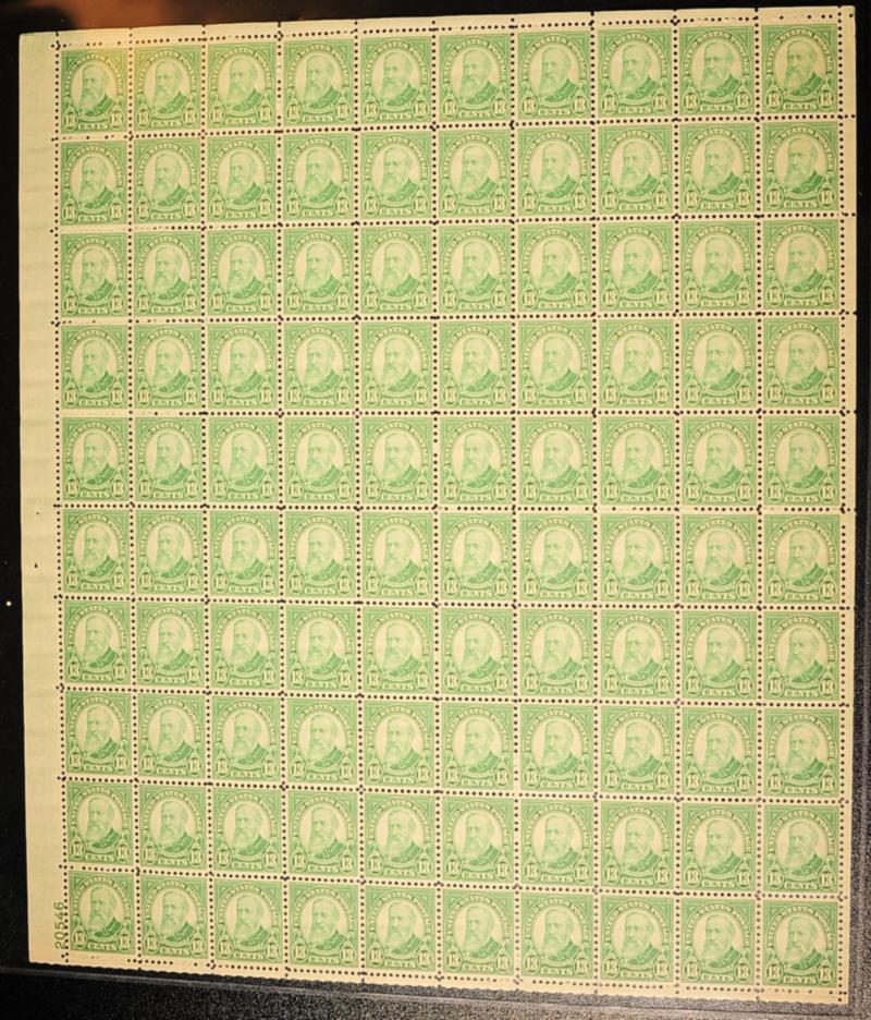 1931. 13c YELLOW GREEN COMPLETE PANE OF 100, #694, mint never hinged, plate #20546, fine-very fine, cat. $363.50 (Image)