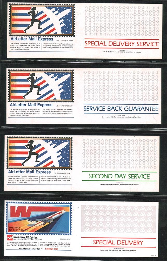 US PRIVATE AIR LETTER STAMP COLLECTION, 27 diff. unused franking labels from Airletter Mail Express, Western Airletter, Burlington Airletter and Pride Airletter, very fine (Image)