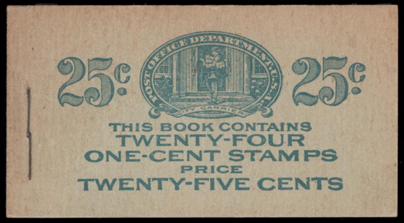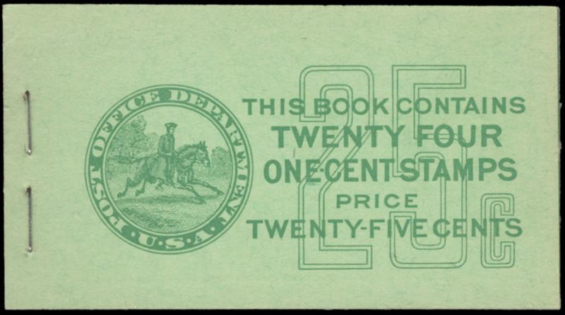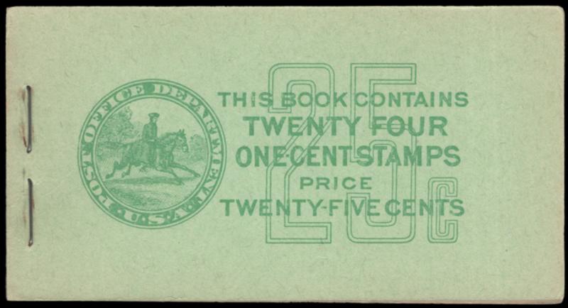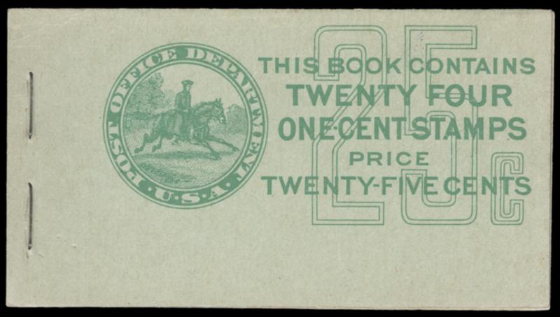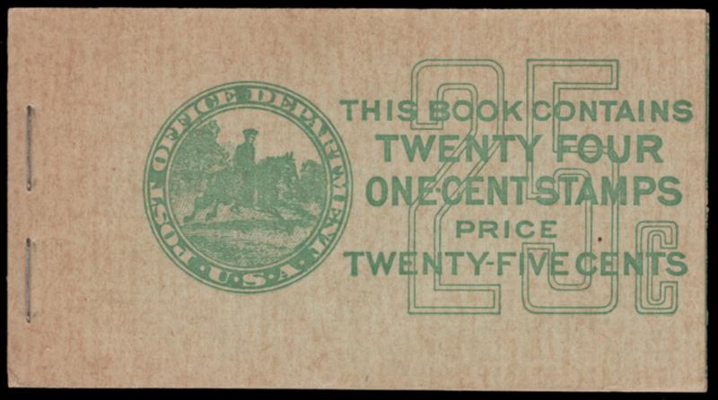 1c GREEN COMPLETE 25c BOOKLET WITH DARK GREEN & GREEN COVERS, #BK55, cover BIA IIj, oval 29x18mm, complete mint never hinged with four panes of #498e, each showing guide line at right, very fine, cat. $110.00 (Image)