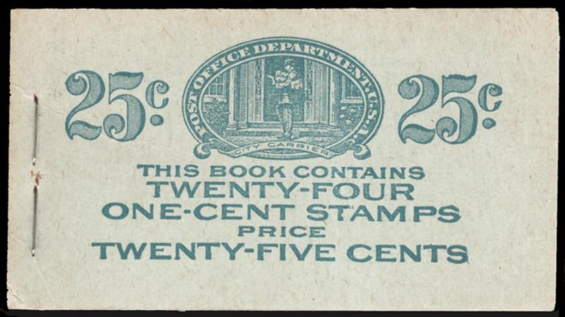 1c GREEN COMPLETE 25c BOOKLET GREEN ON GREEN COVER, #BK75, cover type IVf, complete unexploded mint never hinged booklet with 4 panes of #632a, fresh and very fine, cat. $65.00 (Image)