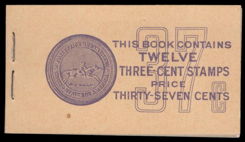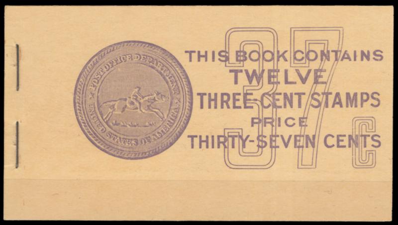 3c VIOLET COMPLETE 37c BOOKLET VIOLET ON BUFF COVER, #BK100, cover type IVd (IVf), 3mm, small print, complete unexploded mint never hinged booklet with 2 panes of #807a, fresh and very fine, cat. $85.00 (Image)