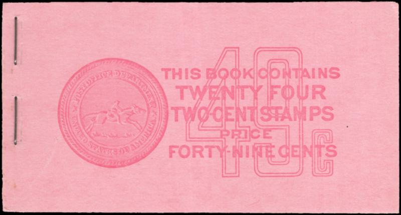 2c ROSE CARMINE 49c BOOKLET RED ON PINK, #BK99, cover type IVe (IVh), complete unexploded mint never hinged booklet with two panes of #806b, very fine, 2½mm, very fine, cat. $70.00 (Image)