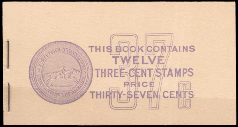 3c VIOLET COMPLETE 37c BOOKLET VIOLET ON BUFF COVER, #BK100, cover type IVd (IVf), 3mm, large print, thick stock, complete unexploded mint never hinged booklet with 2 panes of #807a, fresh and very fine, cat. $85.00 (Image)