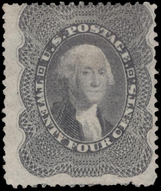 1860, 24c GRAY UNUSED, #37a, few short perfs, tiny thin, fine, with 2024 William T. Crowe cert.,cat. $500.00 (Image)