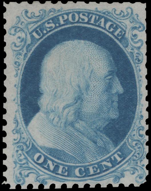 1875, 1c BRIGHT BLUE OFFICIAL REPRINT UNUSED, #40, without gum as issued, scissors separated causing bit of short perfs at top and top right, fine-very fine, with William T. Crowe cert., cat. $600.00 (Image)