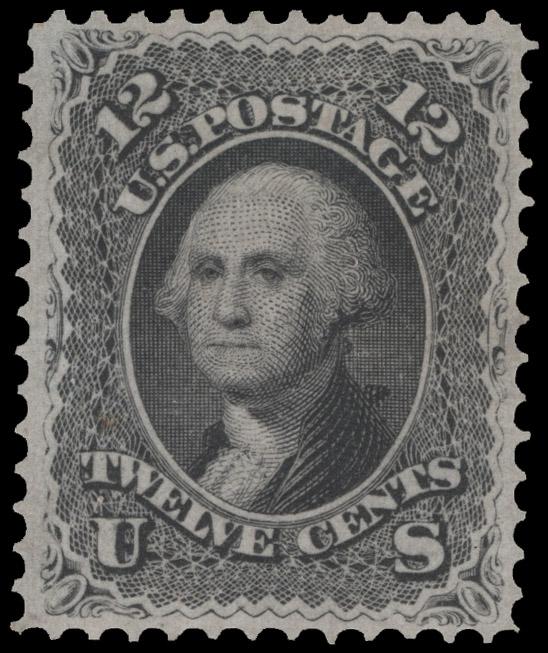 1861, 12c BLACK UNUSED,#69, well-centered and fresh, without gum, very fine, with 2024 William T. Crowe cert., cat. $675.00 (Image)