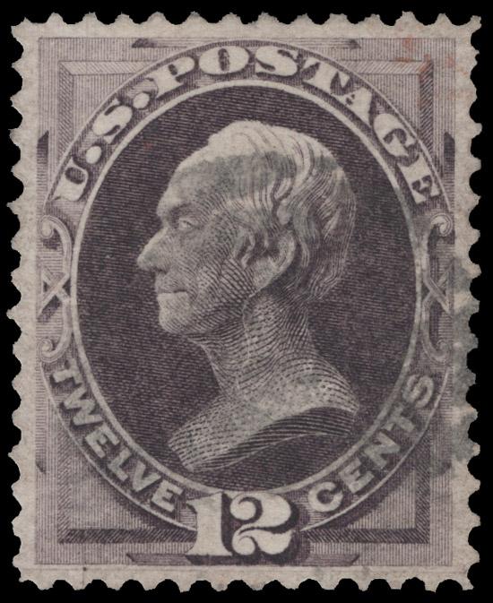 1870, 12c DULL VIOLET USED XF, #151, exceptionally well-centered, cork cancel, extremely fine, with 2002 PSE cert., cat. $200.00 (Image)