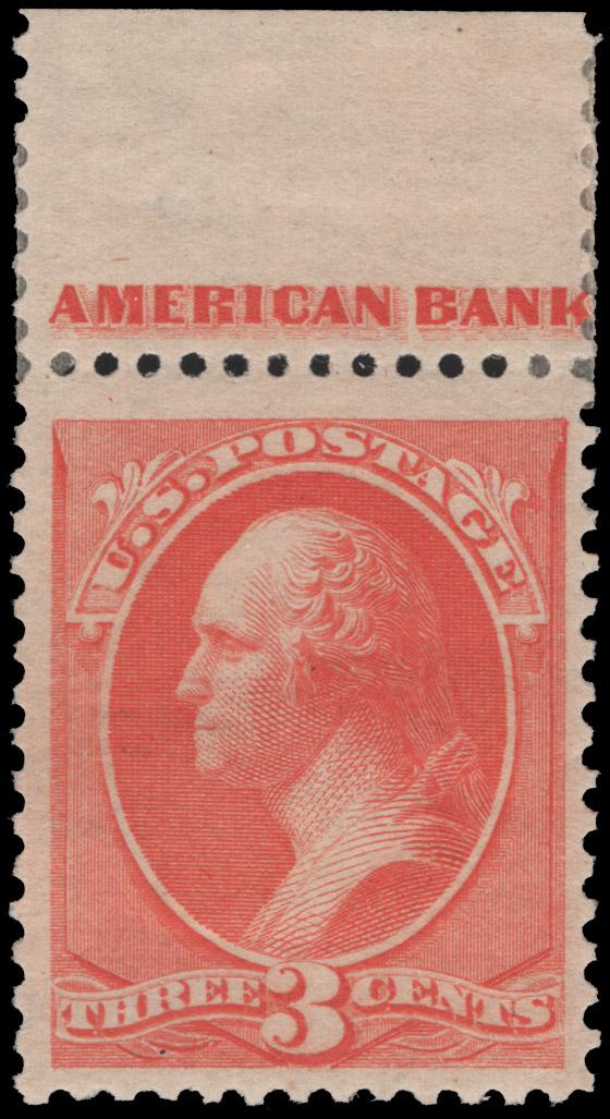 1887, 3c VERMILION TOP IMPRINT SINGLE MINT, #214, well-centered and attractive, o.g., h.r., very fine - extremely fine, with 2024 William T. Crowe cert., cat. $65.00 (Image)