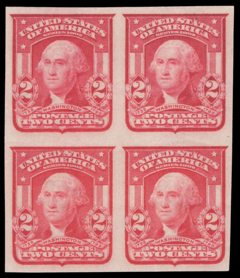 1907, 2c JAMESTOWN TOP ARROW BLOCK NH, #329, fresh, fine-very fine, cat. $150.00 as hinged, $340.00 as four mint never hinged singles (Image)
