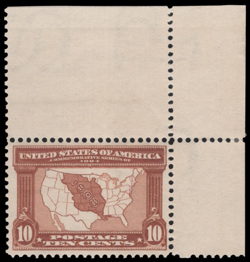 1904, 10c LA PURCHASE NH CORNER SINGLE, #327, fresh and well-centered, very fine, with 2022 William T. Crowe cert., cat. $300.00 (Image)