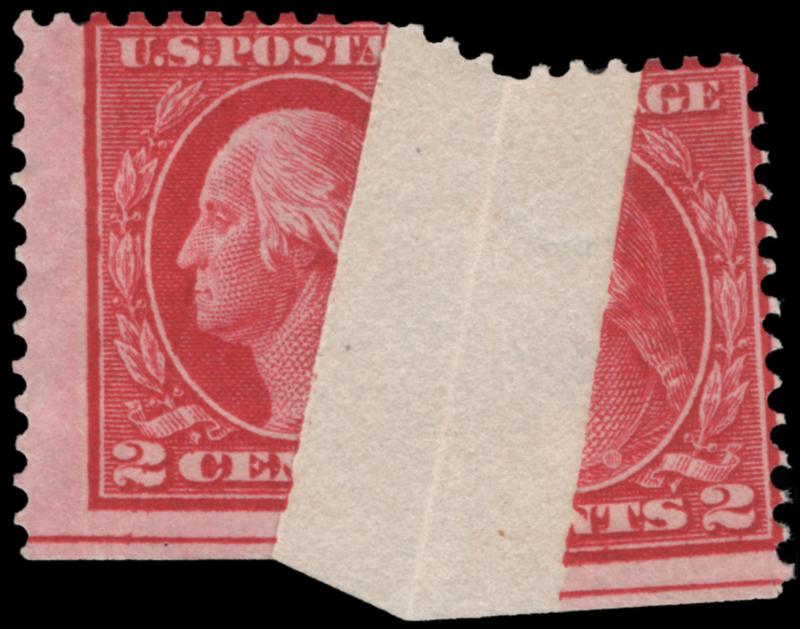 1912, 2c CARMINE SINGLE LINE WMK PRE-PRINTING PAPERFOLD SINGLE MINT, #406, traces of o.g., spectacular "accordion" fold (Image)