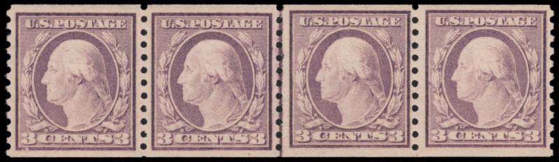 1917, 3c VIOLET TYPE I JOINT LINE STRIP OF FOUR NH, #493, fresh and well-centered, extremely fine, with 2002 PSE cert., cat. $295.00 (Image)