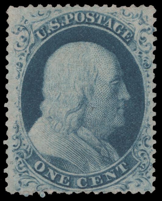 1861, 1c BLUE TYPE IIIa PLATE 11 USED, #22, well-centered and attractive, lightly cancelled leaving all of the design free, very fine, with 2025 William T. Crowe cert., cat. $525.00 (Image)