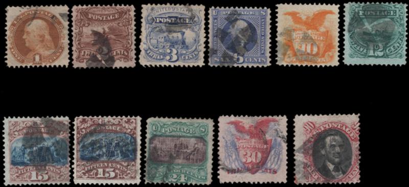 1869, 1c-90c PICTORIALS USED, #112-22, attractive used set, small flaws, cat. $5,070.00 (Image)