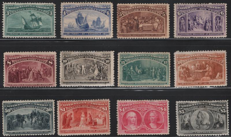 1893, 3c-$5 COLUMBIAN ISSUE MINT GROUP, #232-241, 244, 245, mint, most o.g., some flaws, cat. $6,870.00 (Image)