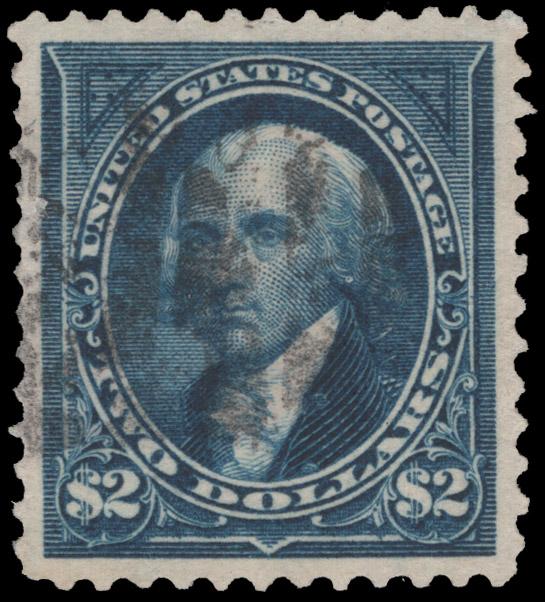 1895, $2 BRIGHT BLUE USED IN EXCELLENT CENTERING, #277, four large margins, fairly light grid cancel, small flaws, extremely fine/superb, with 2025 William T. Crowe cert., cat. 400.00 (Image)
