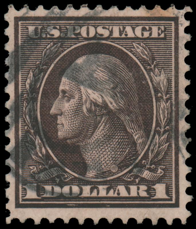 1909, $1 VIOLET BROWN USED XF, #342, well-centered, lightly cancelled, couple toned perfs., extremely fine, cat. $95.00 (Image)