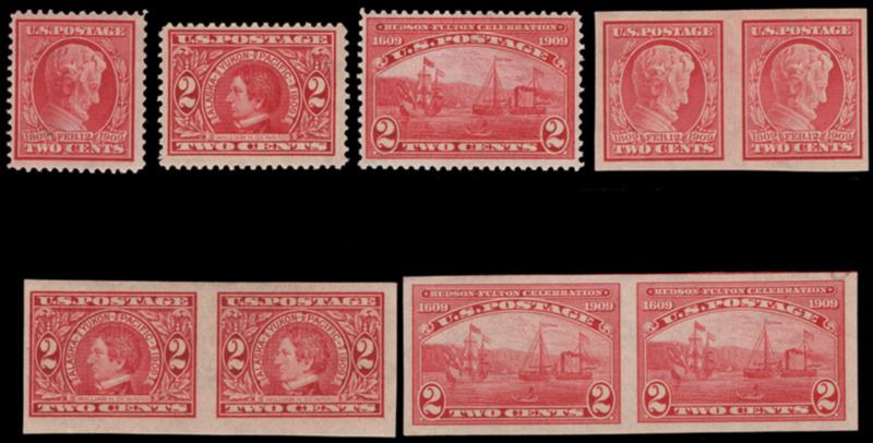 1909 COMMEMORATIVE ISSUES NH, #357, 370, 372 in singles, 368, 371, 373 imperf pairs, mint never hinged, fine-very fine, cat. $250.50 (Image)