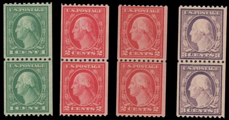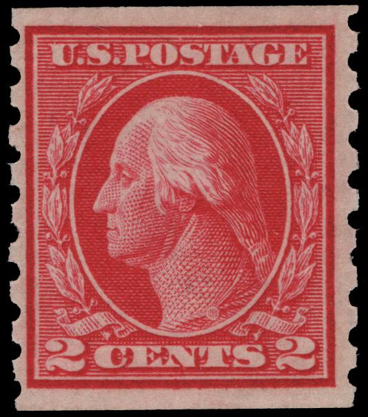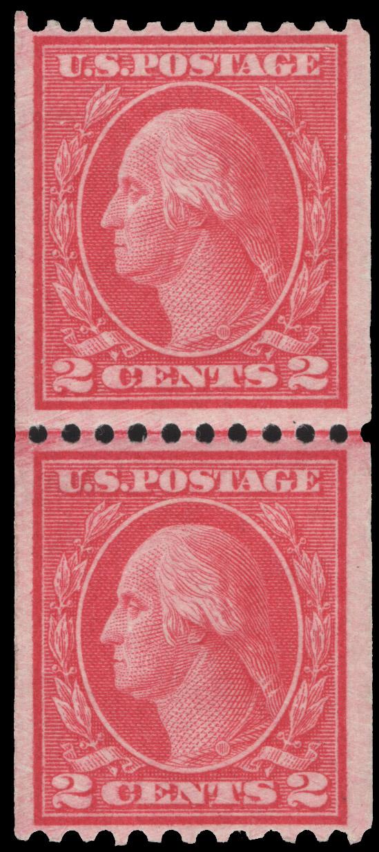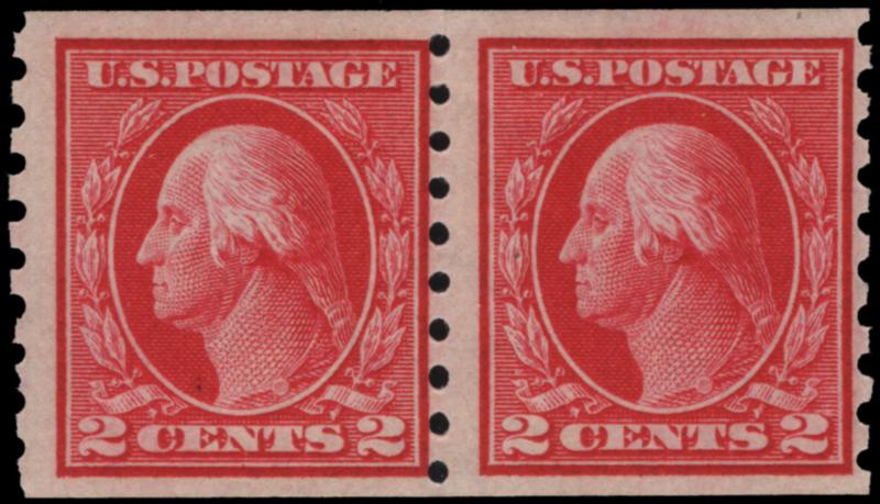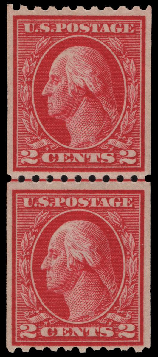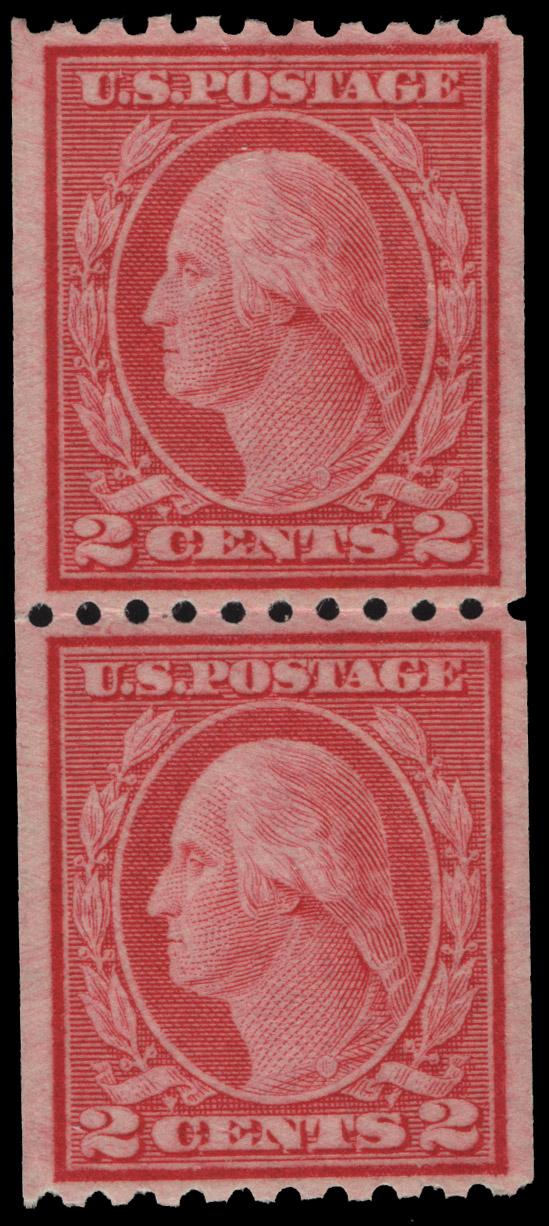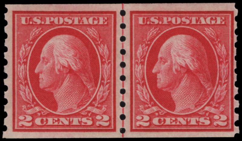 1914, 2c CARMINE TYPE COIL GUIDE LINE PAIR NH, #442, fresh, very fine, cat. $130.00 (Image)