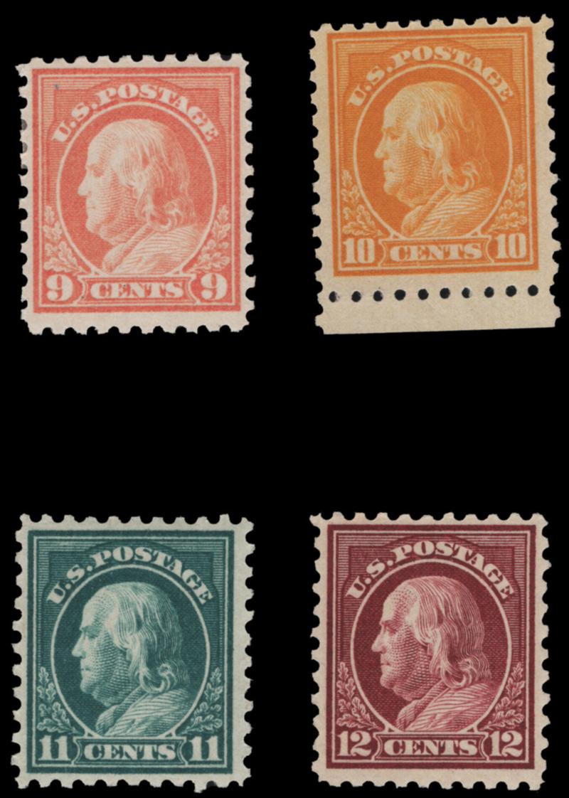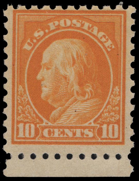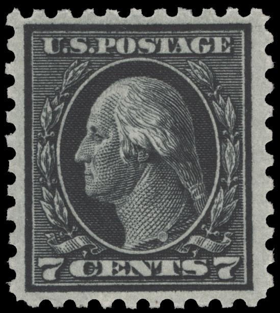 1914, 7c BLACK PERF 10 SINGLE LINE WMK NH, #430, fresh and well-centered, very fine - extremely fine, cat. $190.00 (Image)
