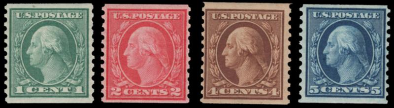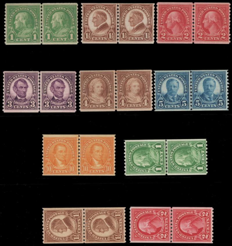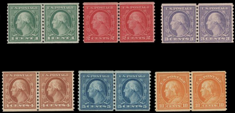 WASHINGTON-FRANKLIN COIL PAIRS MINT NEVER HINGED, #390//497, incl. five mint never hinged pairs of each, incl. nos. 390, 441-42, 448 (only four pairs), 486, 486 line pair, 489, 490, 492, 405, 496 and 499, fresh and attractive, fine-very fine, cat. $1,850.00 (Image)