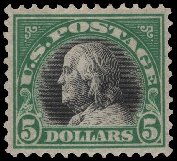 1919, $5 DEEP GREEN & BLACK MINT, #524, fresh and well-centered, h.r., very fine, cat. $170.00 (Image)