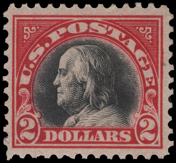 1920, $2 CARMINE & BLACK MINT, #547, well-centered, lightly hinged, very fine, cat. $130.00 (Image)