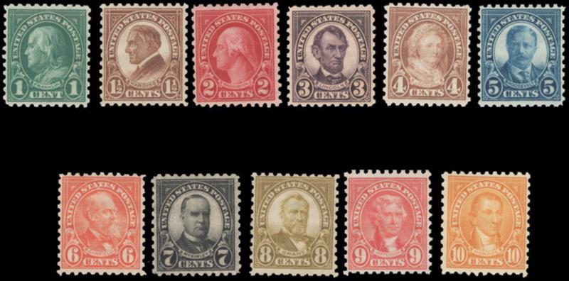1923-26, 1c-10c ROTARY PERF 10 SET NEVER HINGED, #581-91, fresh and overall well-centered, very fine, cat. $371.25 (Image)
