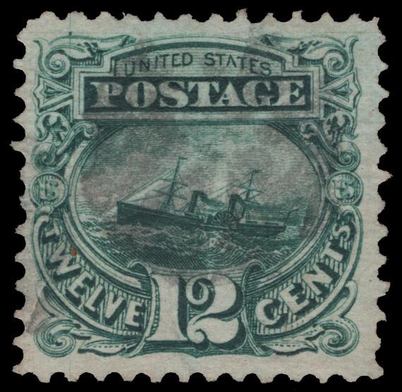 1869, 12c BLUISH GREEN - SPLIT GRILL - USED, #117 var., deep shade, cork cancel, very fine, cat. $175.00 (Image)