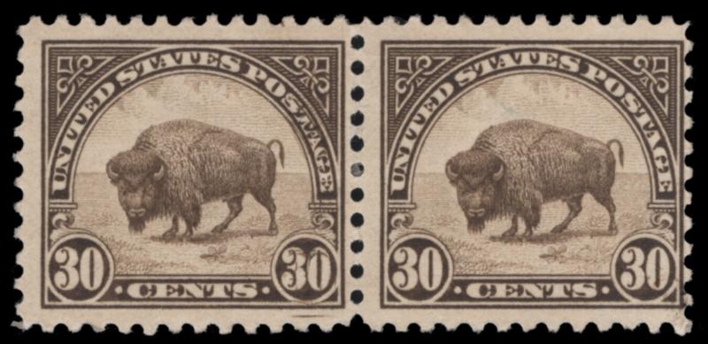 1923, 30c OLIVE BROWN - DOUBLE TRANSFER AT LOWER RIGHT - MINT, #569 var., left stamp in pair with normal, h.r., slight naural gum bends, fine-very fine, cat. $470.00 (Image)