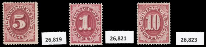 POSTAGE DUE 1884-91 MINT GROUP, #J18, J22, J26, well-centered, o.g., 5c and 10c previously hinged, 5c tiny scrape around "U", 1c sound never hinged and 10c couple minute faults, fine-very fine, all with 2024 William T. Crowe certs., cat. $820.00 (Image)