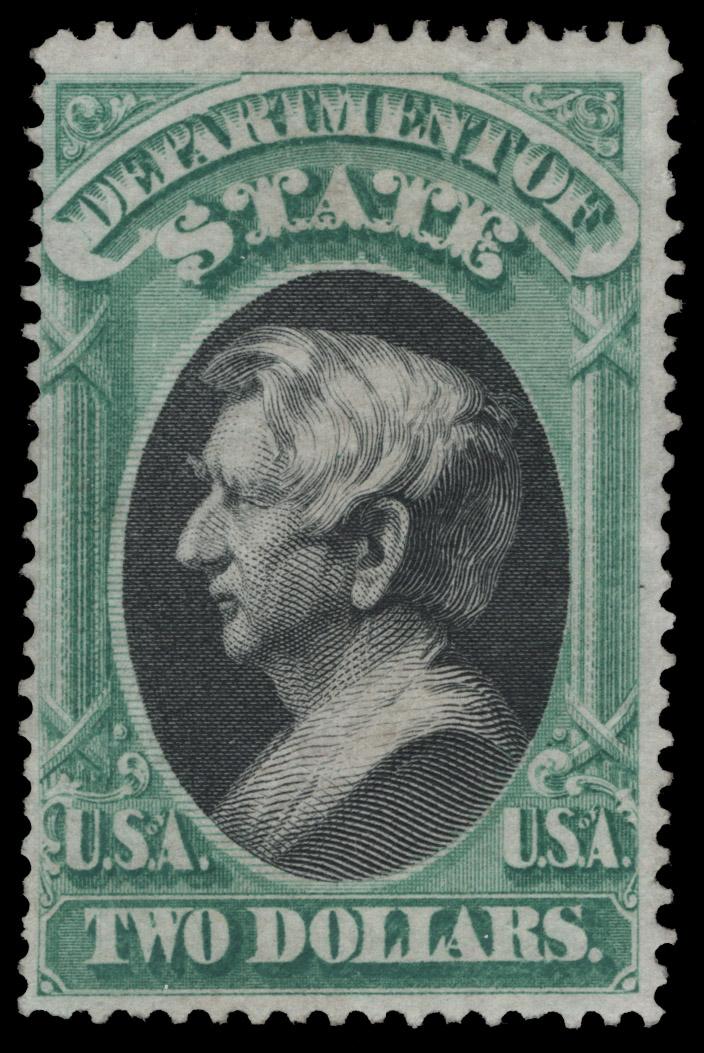1873, $2 GREEN & BLACK STATE DEPT. UNUSED, #O68, attractive regummed, fine-very fine, with 2024 William T. Crowe cert., cat. $850.00 (Image)