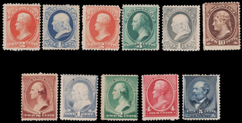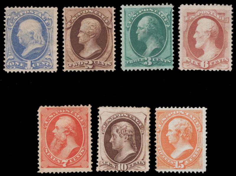 1873, 1c-15c CONTINENTAL BANK NOTE COMPANY UNUSED, #156-61, 163, without gum or regummed, essentially sound, quite attractive, cat. $1,860.00 (Image)