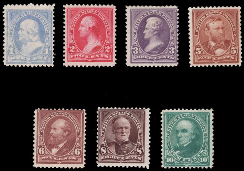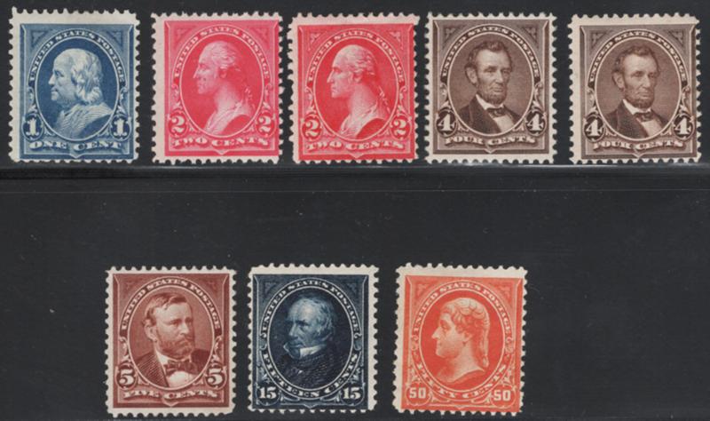 1895, 1c-50c FIRST BUREAU ISSUE WMK DOUBLE LINE MINT, #264, 265, 267, 269 (2),270, 274-75, previously hinged, cat. $461.00 (Image)