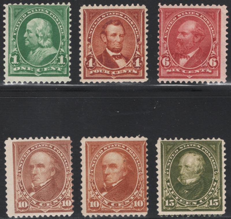 1897-1903, 1c-15c FIRST BUREAU ISSUE MINT, #279, 280, 282, 282C, 283, 284, previously hinged, cat. $460.00 (Image)
