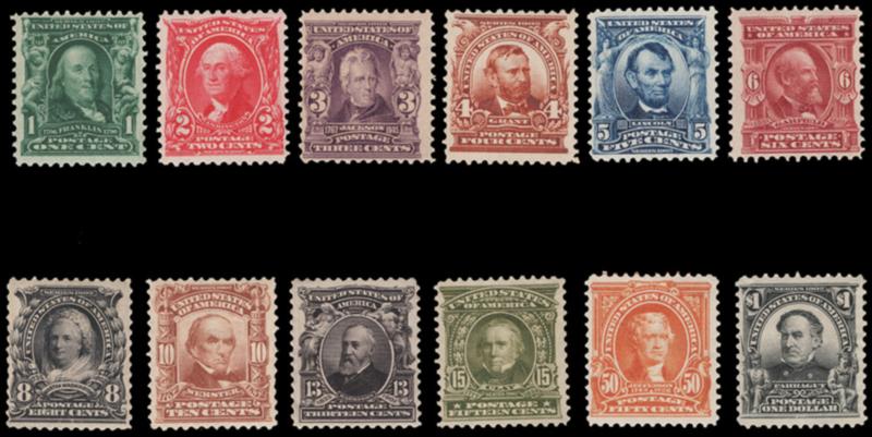 1902-03 REGULAR ISSUE MINT, #300-312, fresh, previously hinged, perfs and centering as scanned, cat. $1,547.00 (Image)