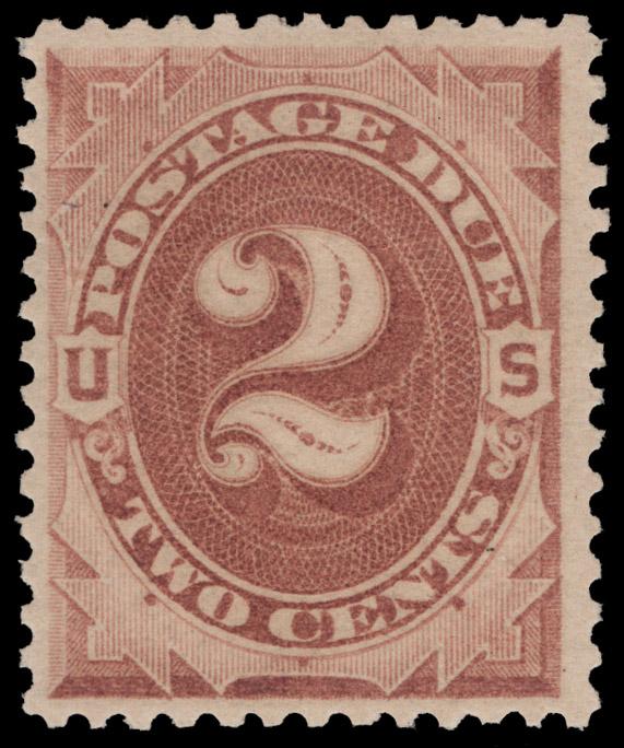 1879, 2c BROWN POSTAGE DUE MINT NEVER HINGED, #J2, exceptionally fresh and quite well-centered, pristine original gum, fine-very fine, cat. $1,050.00 (Image)