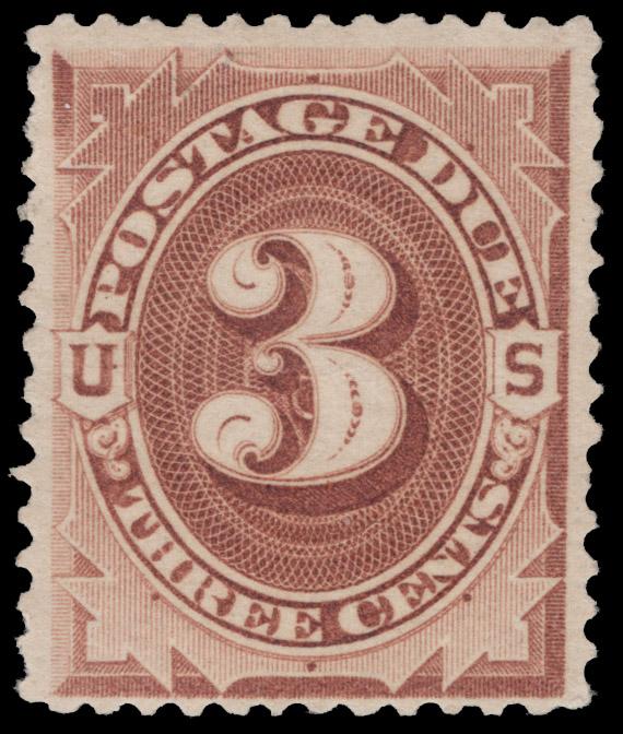 1879, 3c BROWN POSTAGE DUE NH, #J3, fresh, fine-very fine, cat. $450.00 (Image)