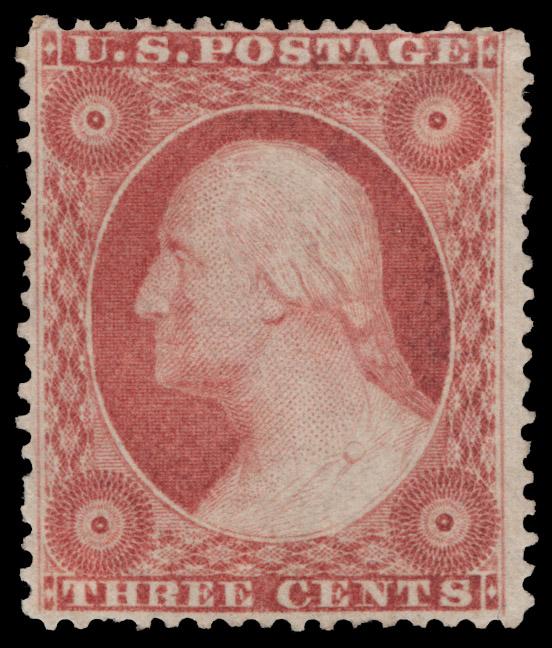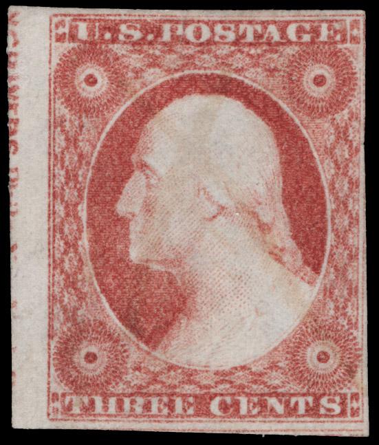 1852, 3c DULL RED TYPE II MINT, #11A, full margins except just in at right, traces of imprint in left selvage, o.g., previously hinged, fine-very fine, cat. $250.00 (Image)