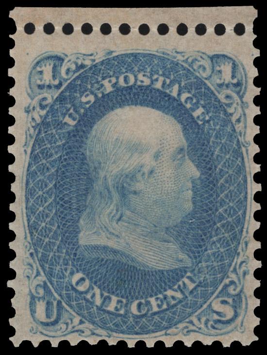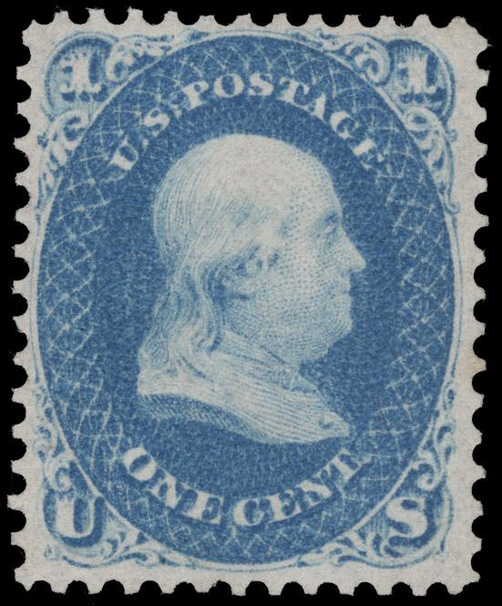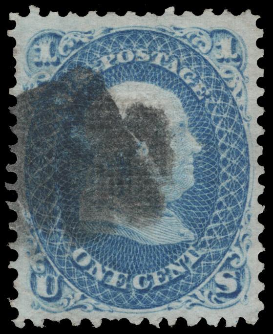 1868, 1c BLUE "E" GRILL USED, #86, well-centered, cork cancel, small flaws, attractive centering, with 2025 PSAG centering, cat. $450.00 (Image)