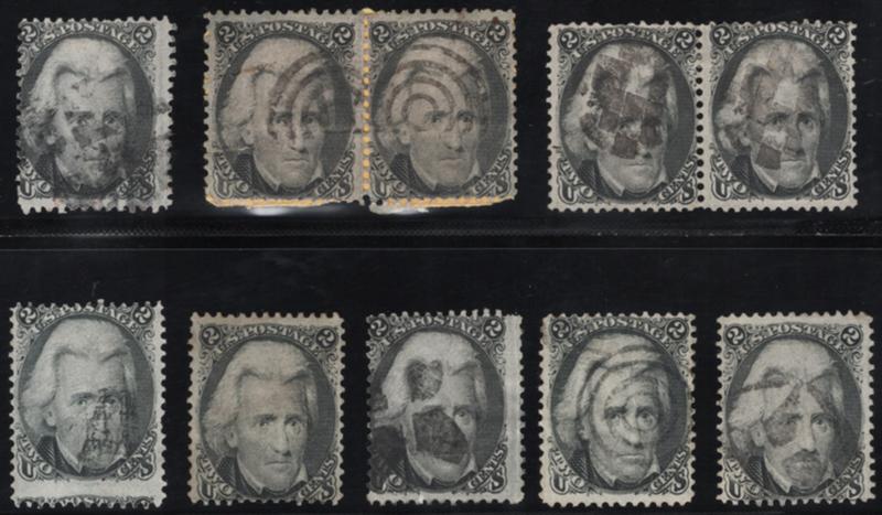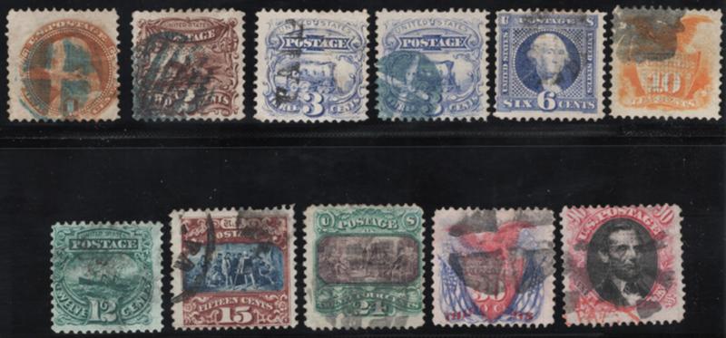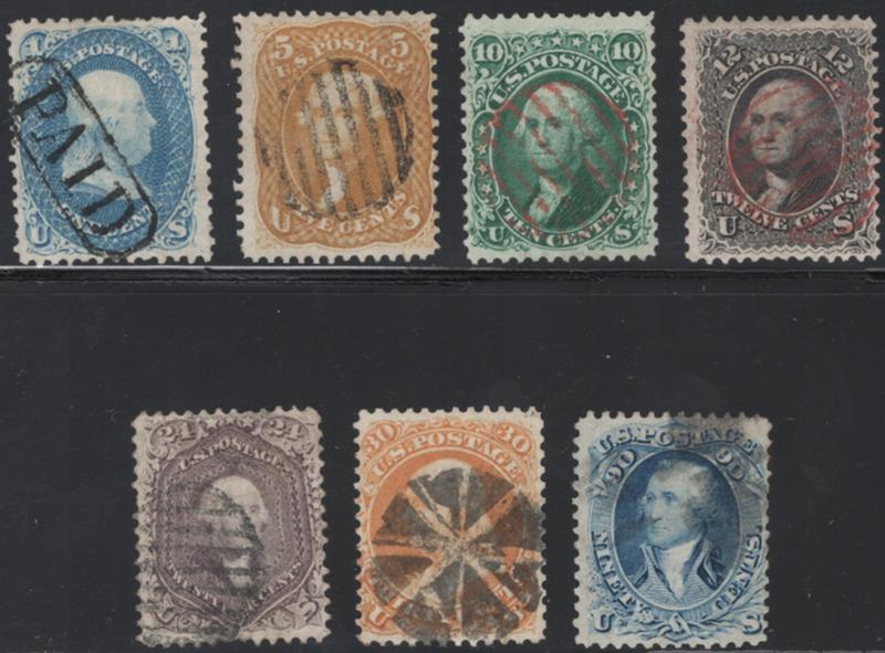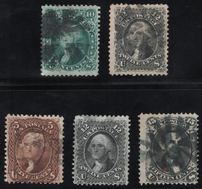 1868 GRILLED ISSUES USED, #89, 90, 95. 97, 98, five diff. 10c and 12c "E" grills and 5c, 12c and 15c "F" grills, very good - fine, cat. $2,285.00 (Image)