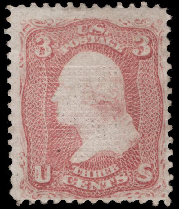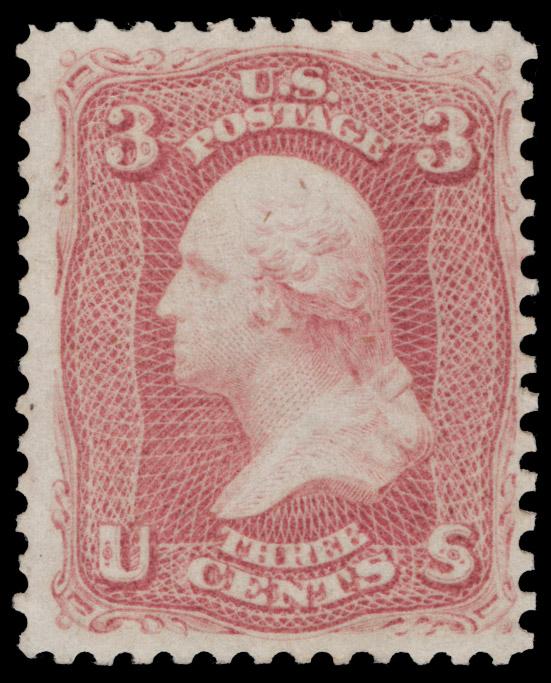 1867, 3c ROSE E GRILL MINT, #88, fresh, lightly hinged o.g., fine, cat. $1,050.00 (Image)