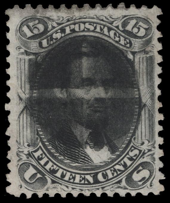 1866, 15c BLACK USED, #77, well-centered with large margins, quartered cork cancel, few gum soaked perfs at top from hinging, choice very fine, with 2025 PSAG cert., cat. $225.00 (Image)