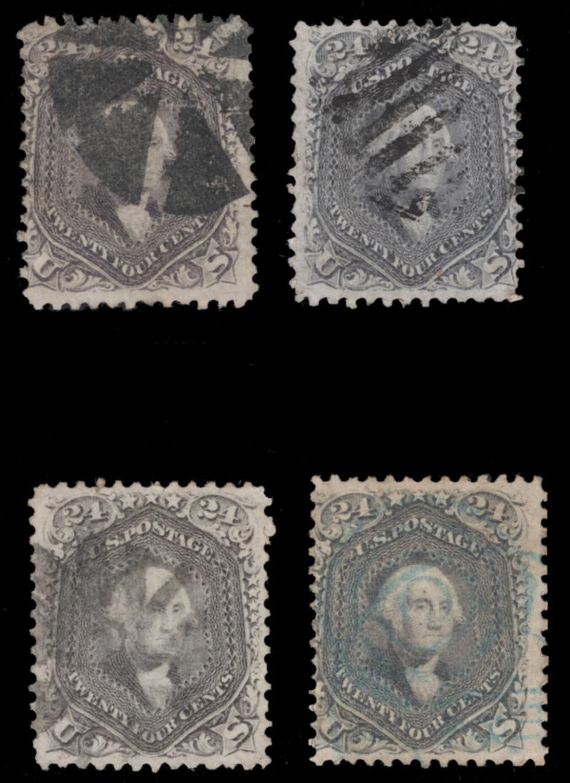 1862, 24c LILAC - FOUR DIFF. SHADES - USED, 78, four distinctly diff. shades, sound or very minute flaws, cat, 1,300.00 (Image)
