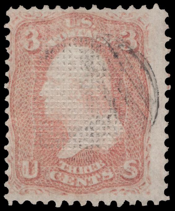 1968, 3c ROSE "C" GRILL USED, #83, light grid cancel, well--pronounced grill, fine, with 2011 PSE cert., cat. $1,150.00 (Image)