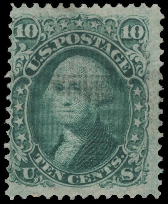 1868, 10c GREEN "E" GRILL UNUSED, #89, fresh, traces of o.g., fine, cat. $2,000.00 as no gum (Image)